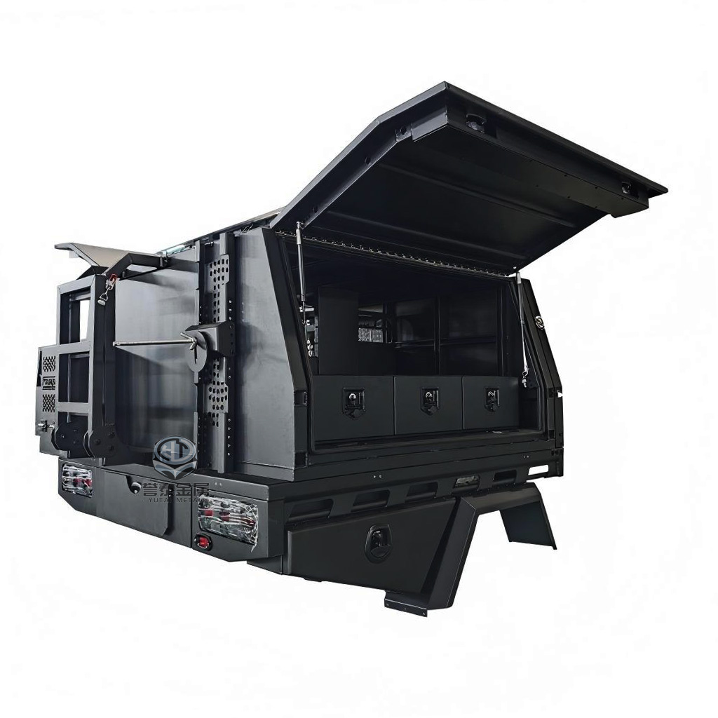 XuZhouYuTai Canopy series is engineered for strength, reliability, and versatility. Available in standard sizes including part tray, dual cab, extra cab, and single cab, custom options are also available to cater to specific width and length requirements. XuZhouYuTai canopies offer a range of options and upgrades, including individual ladder , roof racks, spare wheel holder , jerry can holders, Jack of function, and more, ensuring that you have access to a comprehensive suite of features to meet your specific needs.
