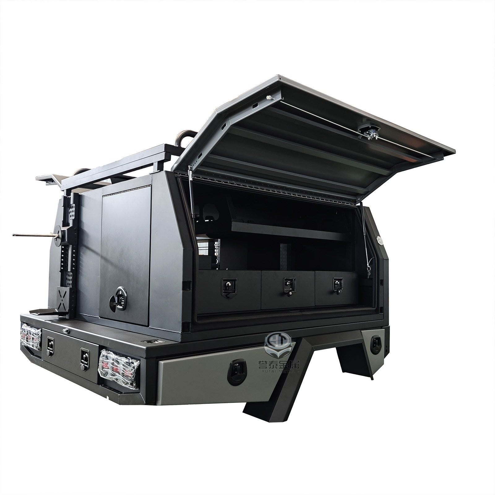 XuZhouYuTai  Canopy series is engineered for strength, reliability, and versatility. Available in standard sizes including part tray, dual cab, extra cab, and single cab, custom options are also available to cater to specific width and length requirements. XuZhouYuTai canopies offer a range of options and upgrades, including individual ladder , roof racks, spare wheel holder , jerry can holders, Jack of function, and more, ensuring that you have access to a comprehensive suite of features to meet your specific needs.